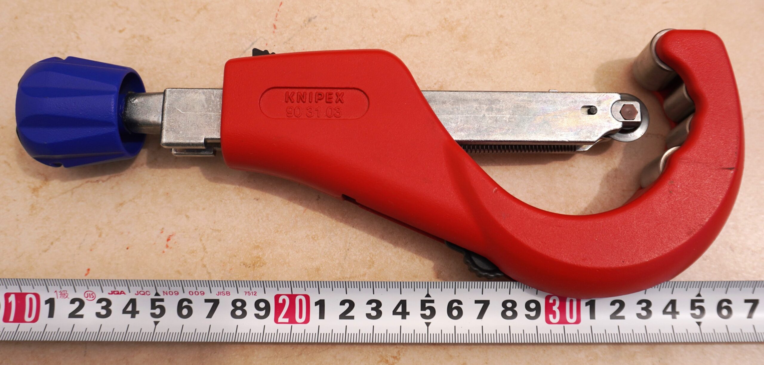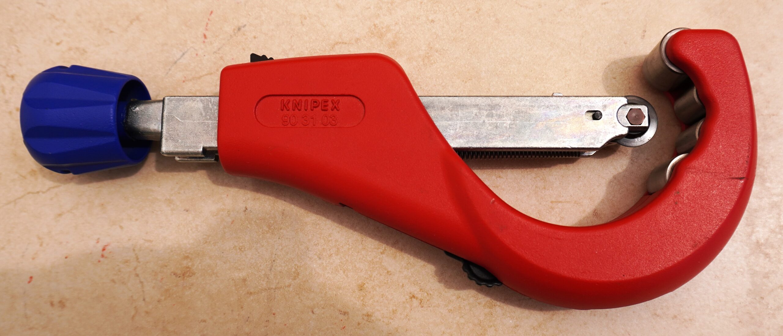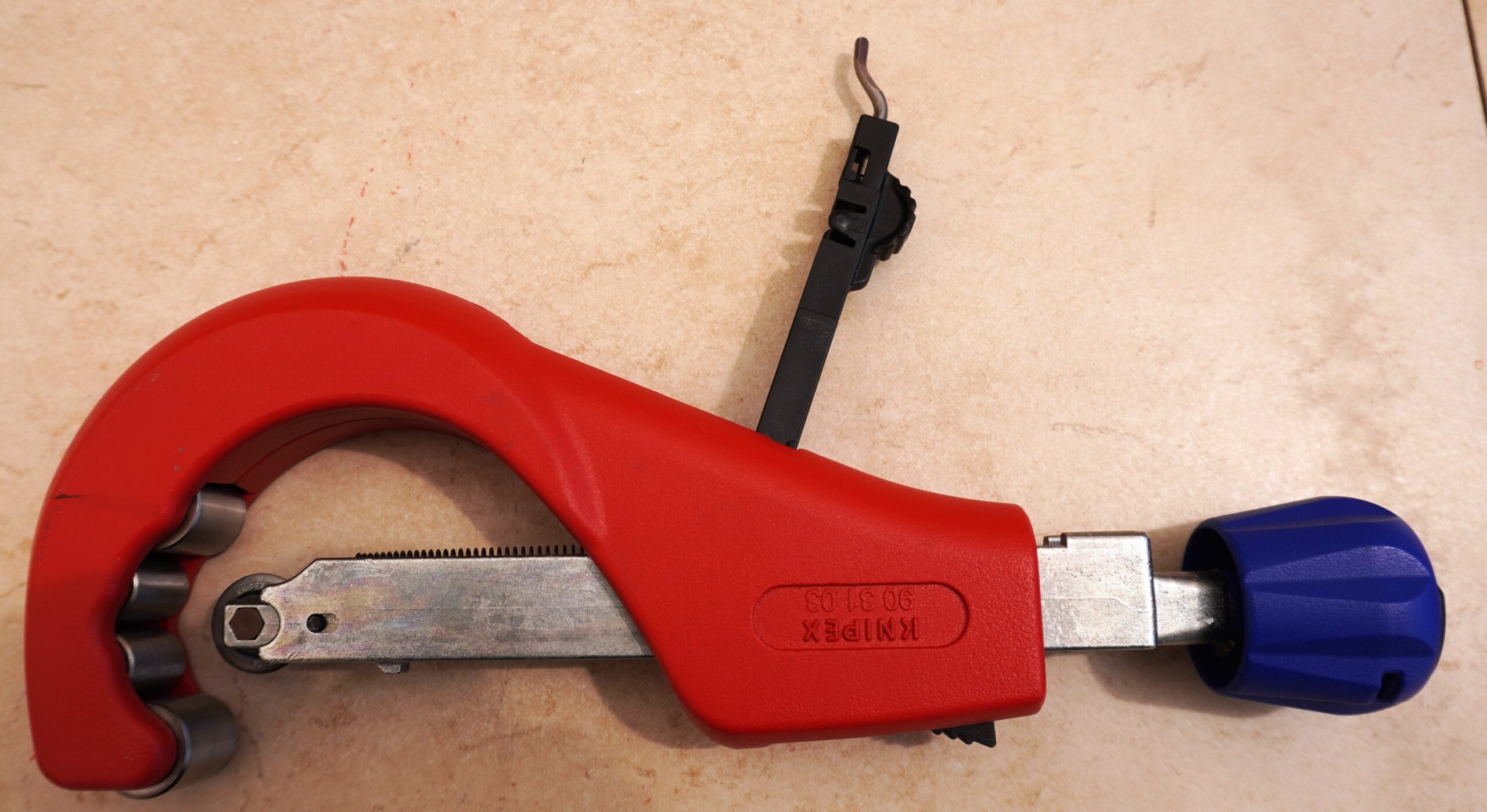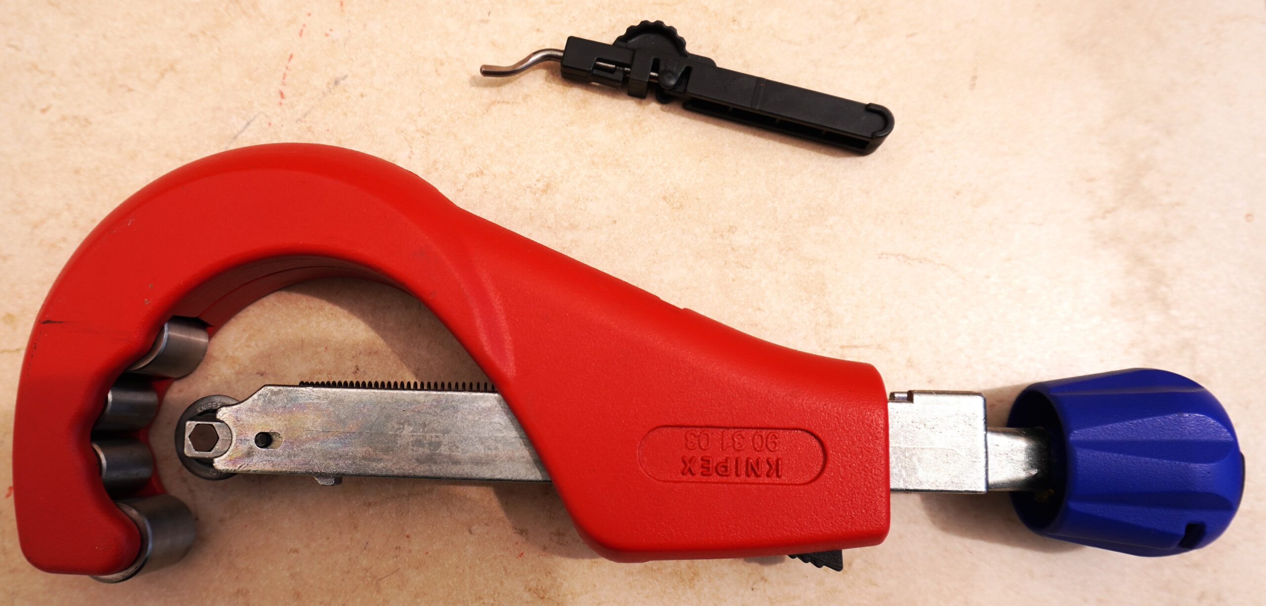 החותך צינורות של קניפקס מגיע גם עם סכין נוספת בידית וגם עם שאבר.